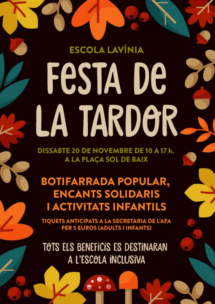 Després que la pandèmia ens obligués a aturar màquines durant el darrer curs, engeguem de nou la maquinària! El dissabte 20 de novembre tenim una cita a la Plaça Sol de Baix ( 10 a 17 h.) amb la festa de tardor, protagonitzada per la tradicional botifarrada popular, els encants solidaris i un munt d’activitats infantils.