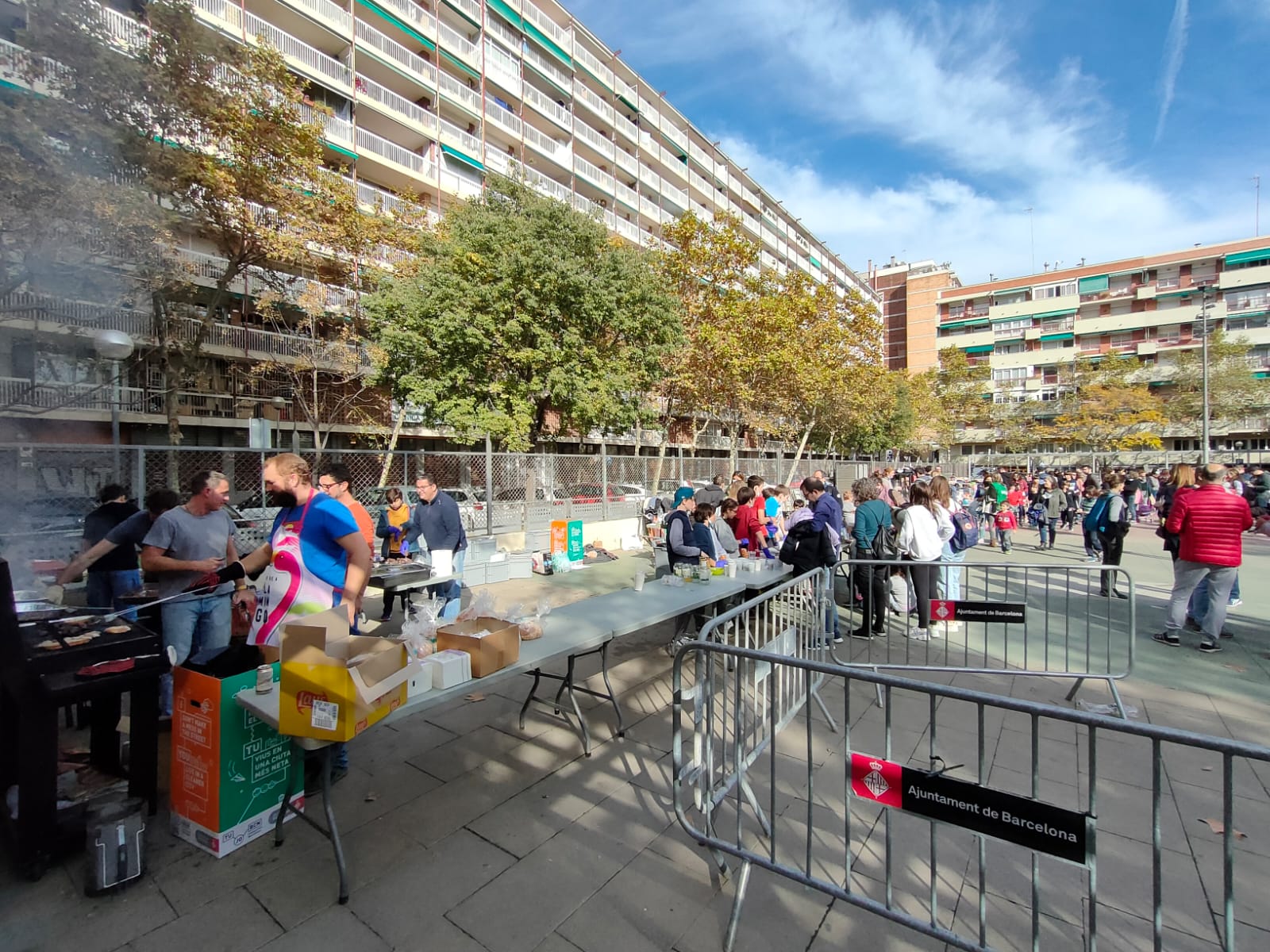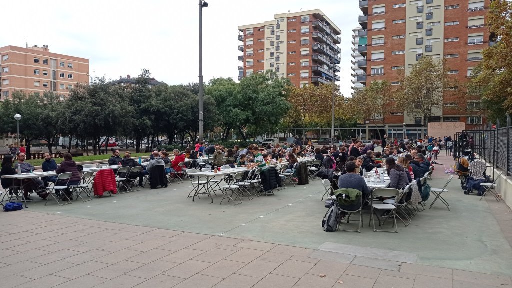 Aquesta gran festa també va ser posssible gràcies a Natural Cuina, que va proveir amb salxixes, Bon Preu ens va donar un cop de mà amb les begudes, ALCIL amb la vaixella, i des de l’Ajuntament de Barcelona i Solidança, ens van donar un cop de mà per recollir-ho tot al final.