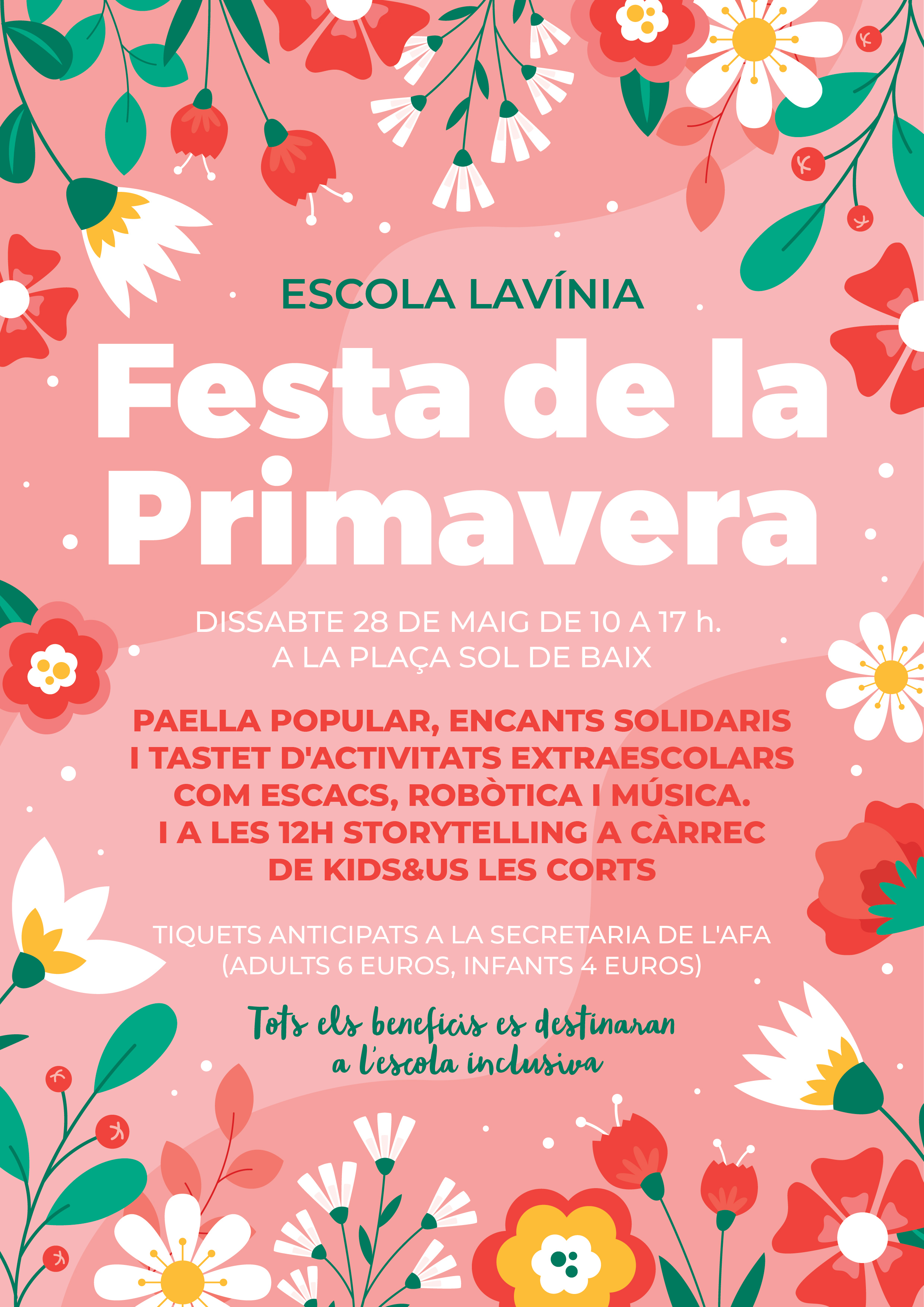 Tots els beneficis que surtin de la festa van directament cap a l’escola inclusiva, per tant, no podeu faltar, i si venen els vostres amics i familiars, millor!