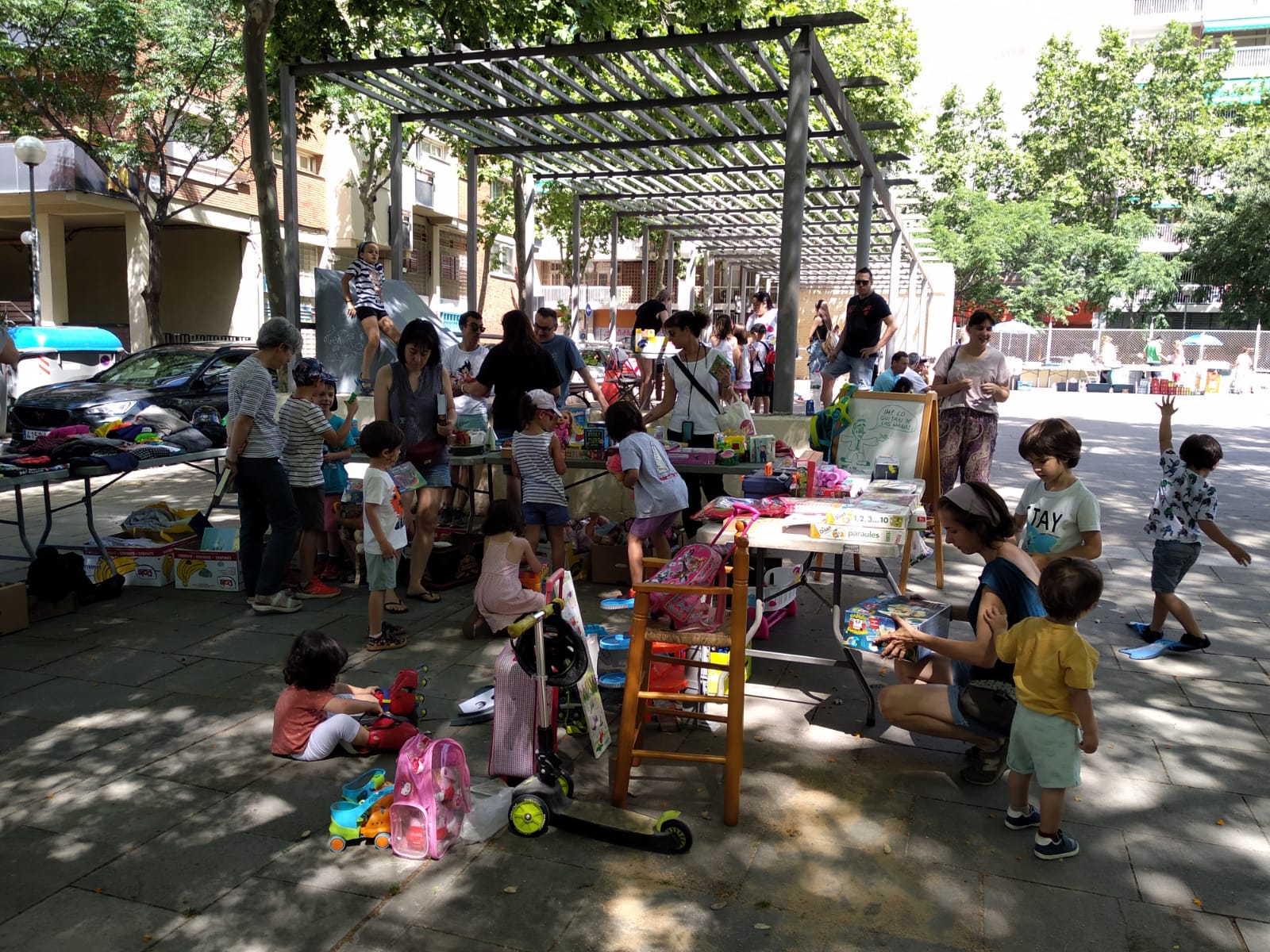El darrer dissabte (28 de juny) va ser un dia rodó, on les famílies vam poder gaudir de la gran Festa de la Primavera! Van ser protagonistes del dia el sol i les ganes de retrobar-nos, però també el torneig d’escacs (amb 23 infants), els pintacares (35 cares pintades!), un gran espectacle d’storytelling a càrrec de Kids & Us, a més a més d’una gran paella (vam dinar plegades 131 persones entre menuts i adults!) i una gran compra-venda als encants (on es van vendre 238 tiquets).