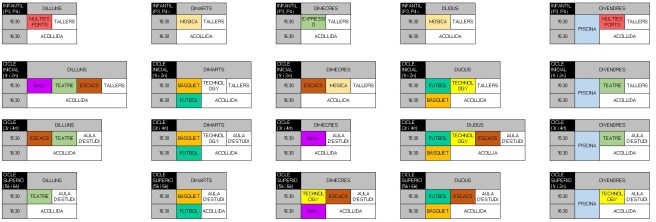 Però quines activitats s’ofereixen? Aquí teniu la graella completa de la oferta inicial: